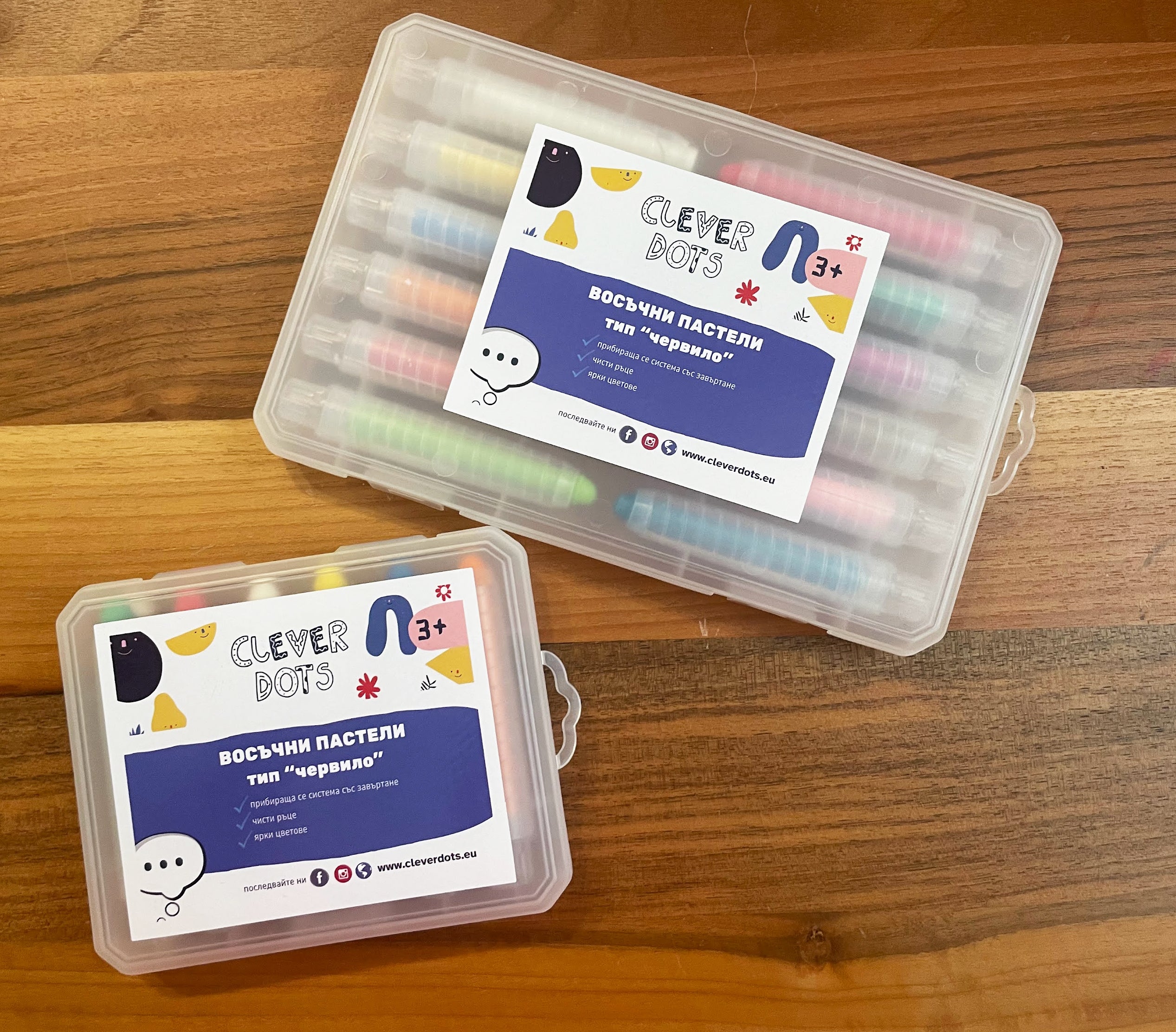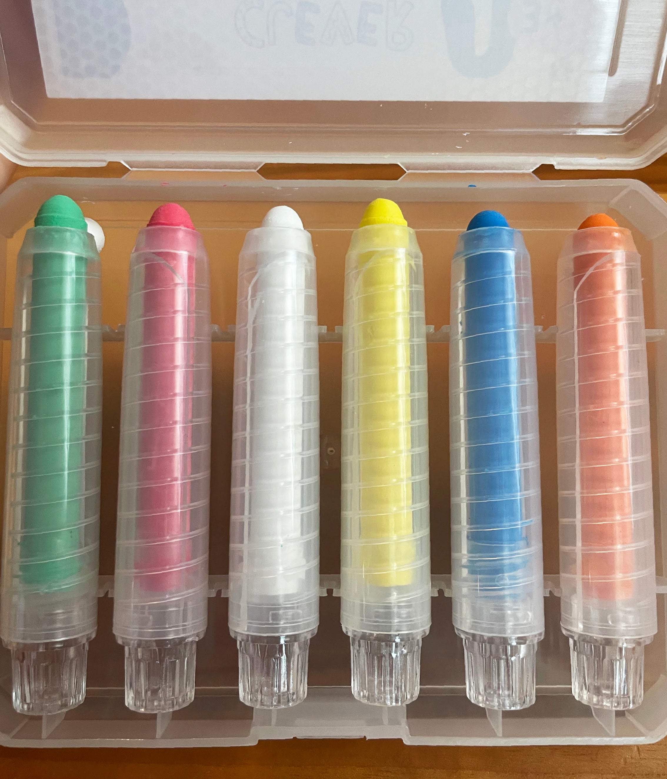 Представяме ви нашите 6 живи, нетоксични, прибиращи се и зареждащи се пастели, предизвикващи креативност върху различни повърхности и са ултра миещи се за лесно почистване.