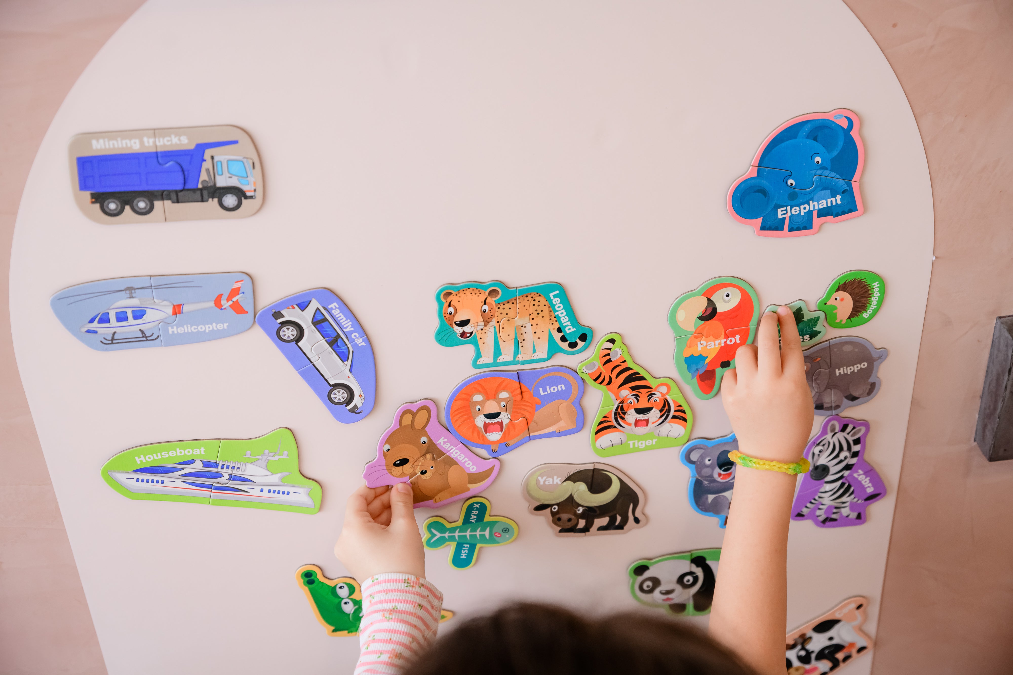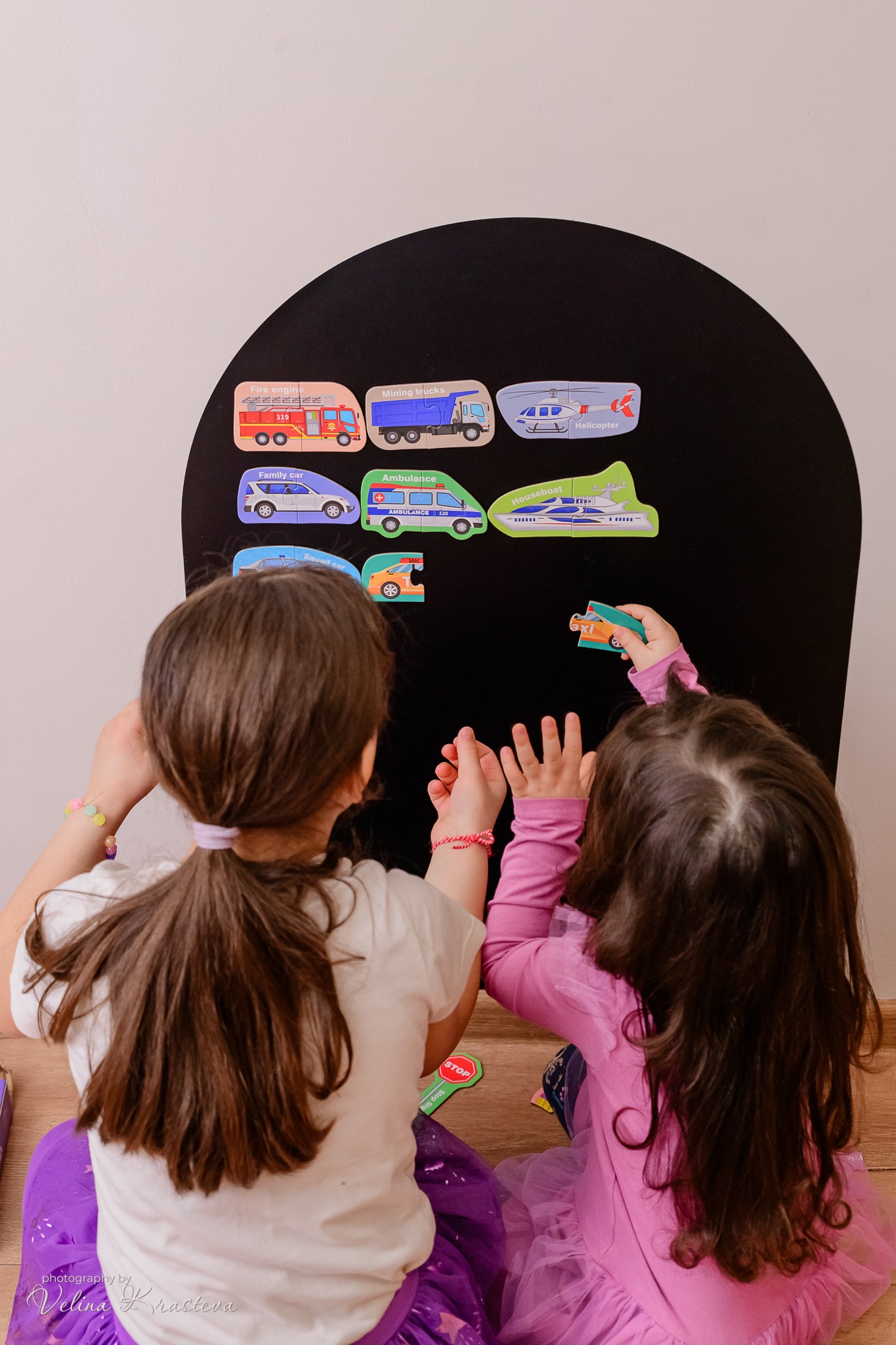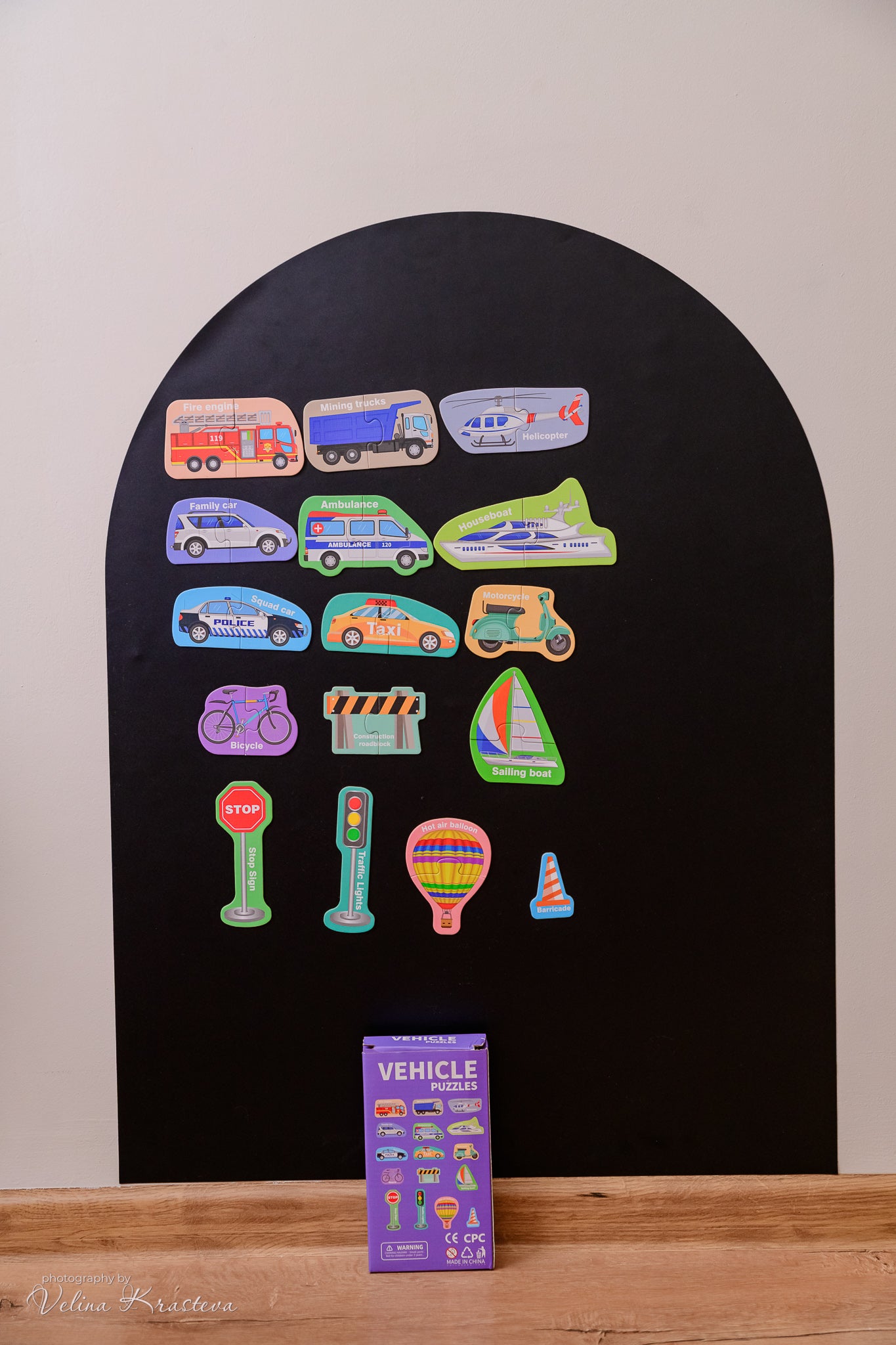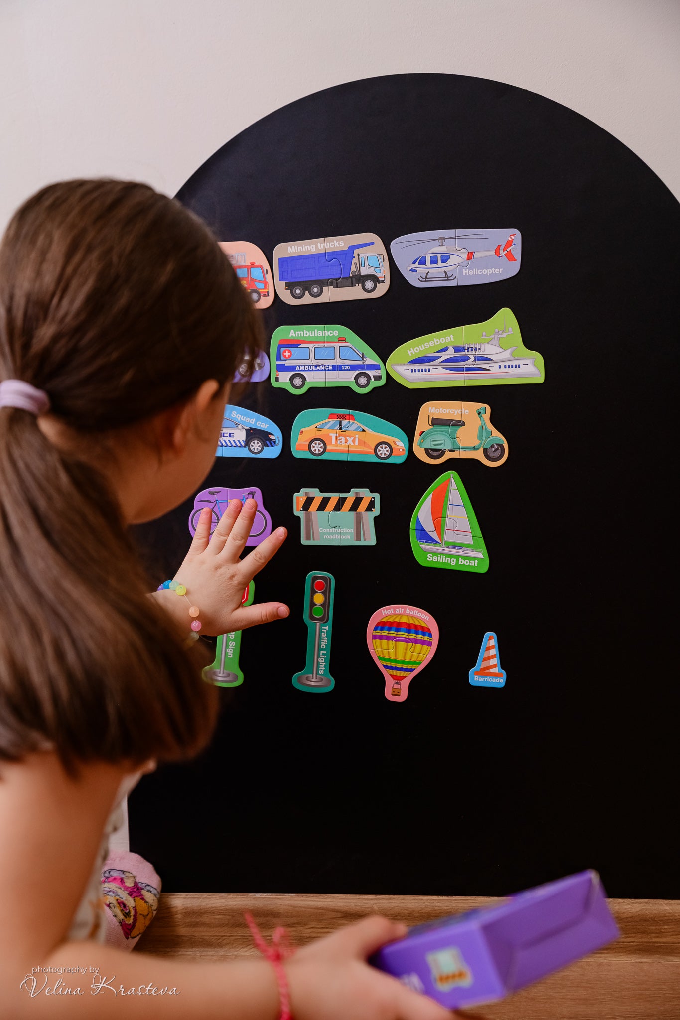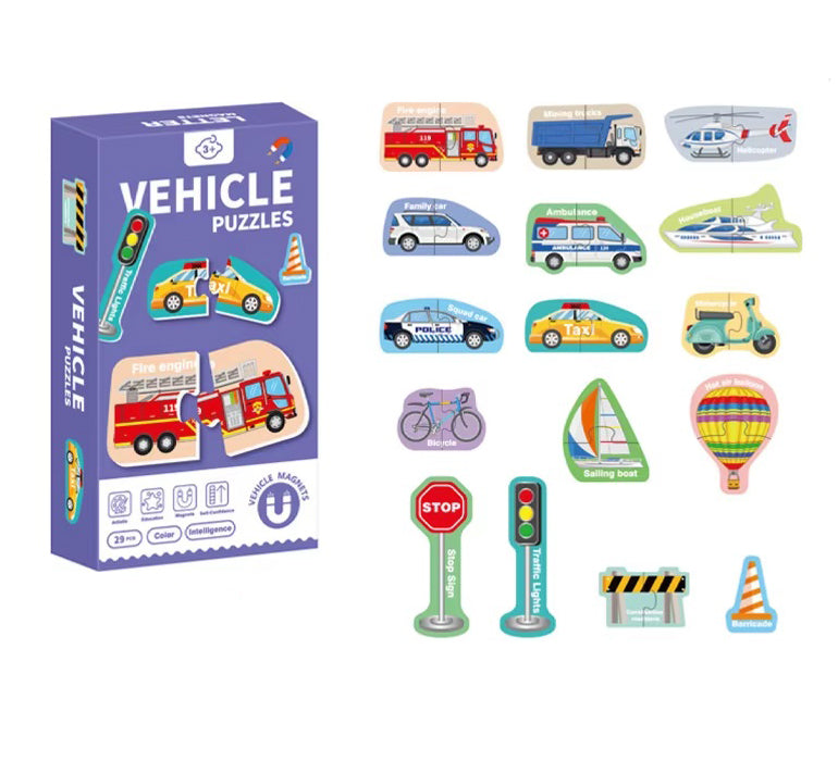 Комплектът магнитен пъзел „Транспорт“ е забавен и образователен начин децата да научат различните видове превозни средства, докато развиват важни умения. Всеки пъзел се състои от две части .